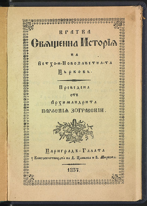 напечата ся с иждивением и трудом от хаджи Найдена Иовановича татарпазарджичанина книгоиздавателя, за болгарскую юност